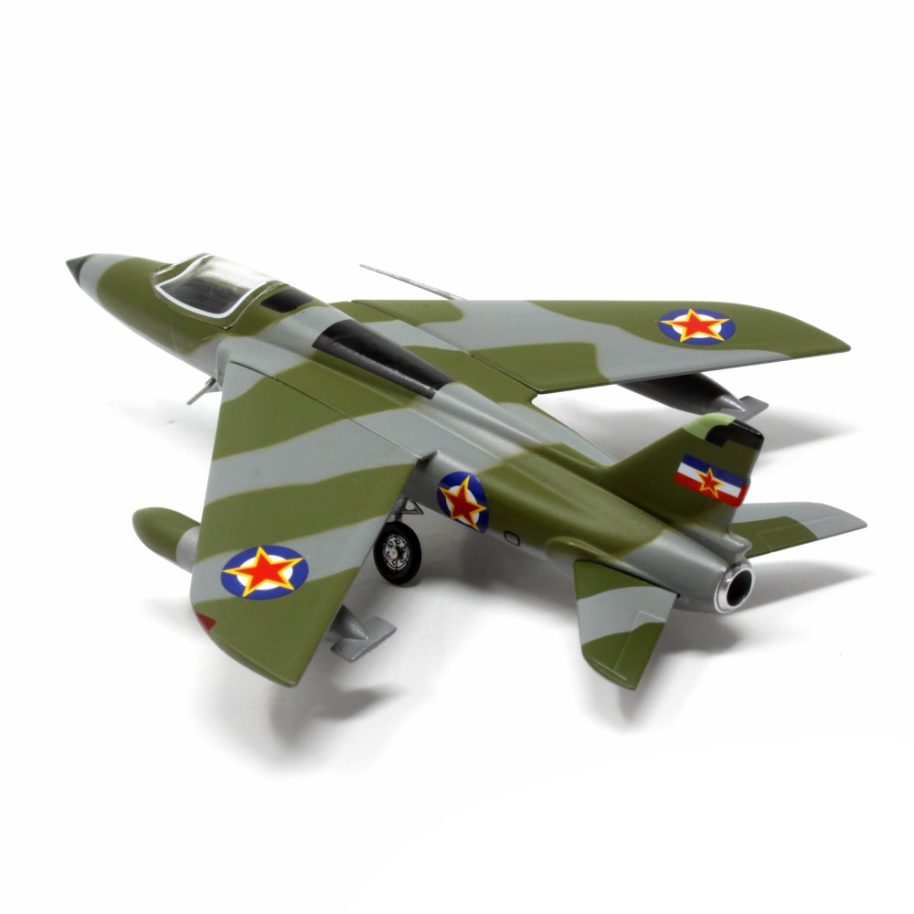 The Yugoslav Air Force ordered two Gnat F.1s for evaluation and the first of these flew in June 1958, but no further aircraft were ordered. One aircraft was destroyed in a crash in 1958, but the other has survived and is preserved and displayed at the Aeronautical Museum Belgrade, in Serbia. This is the airframe modelled here. It's original registration during tests was 11601, but this is not present on the preserved aircraft, so the model correctly reflects this.