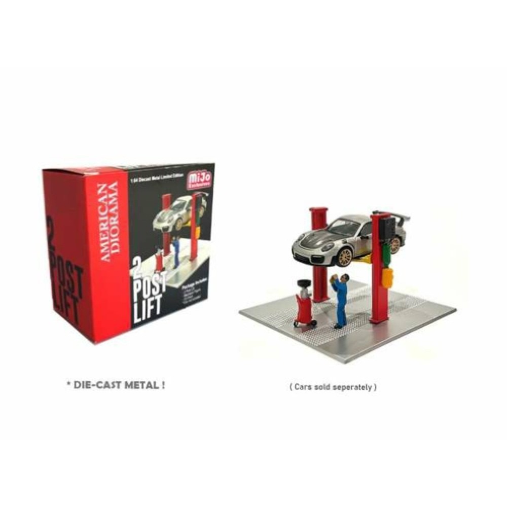 AD38375 - 1/64 2 POST LIFT WITH OIL DRAINER AND MECHANIC FIGURE, RED