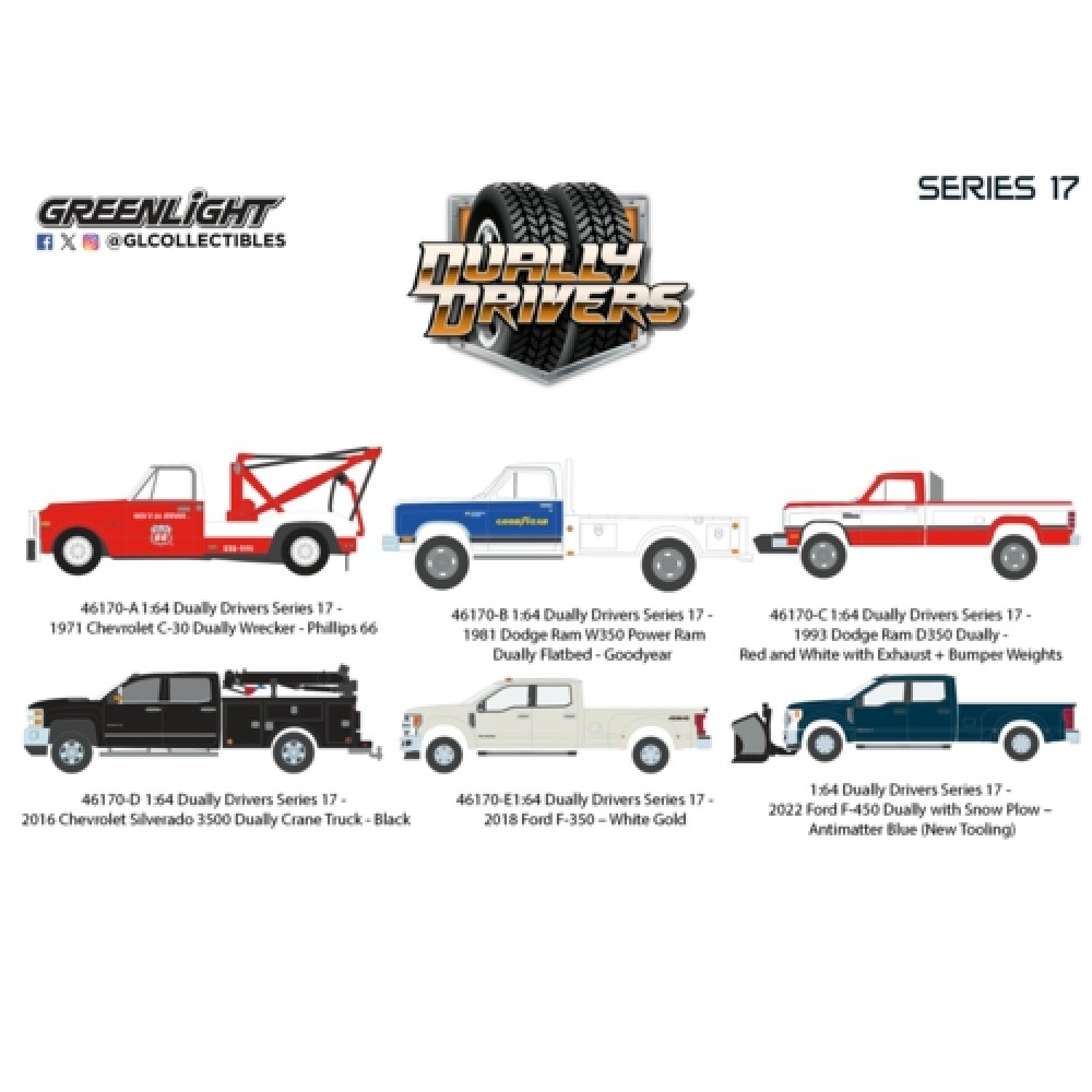 GL46170 - 1/64 DUALLY DRIVERS SERIES 17 - (6 CAR SET) 6 PCS ASSORTMENT